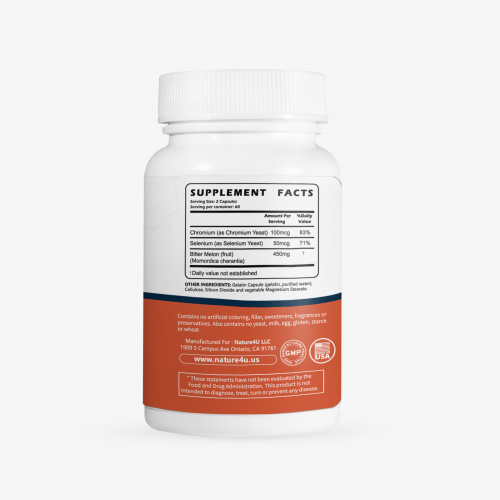 Nature4U Bitter Melon is Non-GMO Verified and does not contain ingredients of animal origin. The caplet is held together with sticky parts of the plant itself and contains no artificial fillers, binders or excipients.